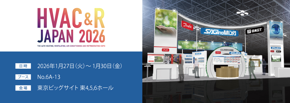 東京ビッグサイトで開催される「HVAC&R JAPAN 2026」にダンフォスおよび日本GTと共同で出展いたします。 ブースでは、電子膨張弁、圧力センサ、圧力スイッチなど各種制御機器を機器別に展示し、規制や規格、技術動向などの市場ニーズにマッチした製品や技術を紹介いたします。 CO₂冷媒システムに最適な制御機器を幅広いラインアップでご提案するほか、ダンフォス社のデータセンター向け流量制御機器をはじめとしたグローバル製品も展示いたします。日本GTコーナーではコア技術であるバイメタルを使ったデモ展示などを行います。 また、実際の製品を使用して配線や設定などの実技を体験できる製品講習会を実施いたします。